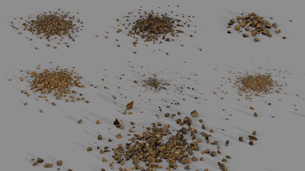 Low poly rocks and rubble piles for background. Can be used in games and films.